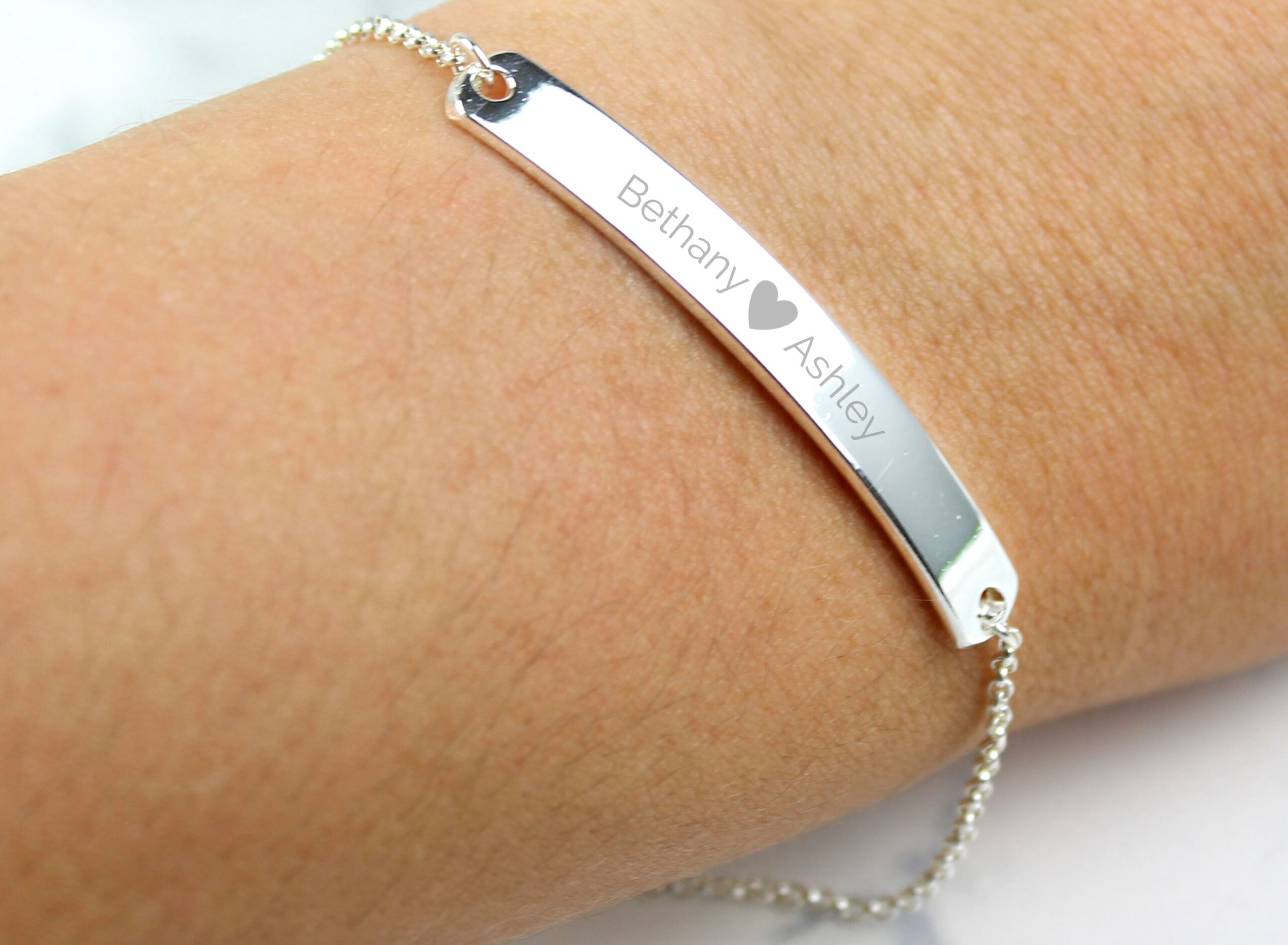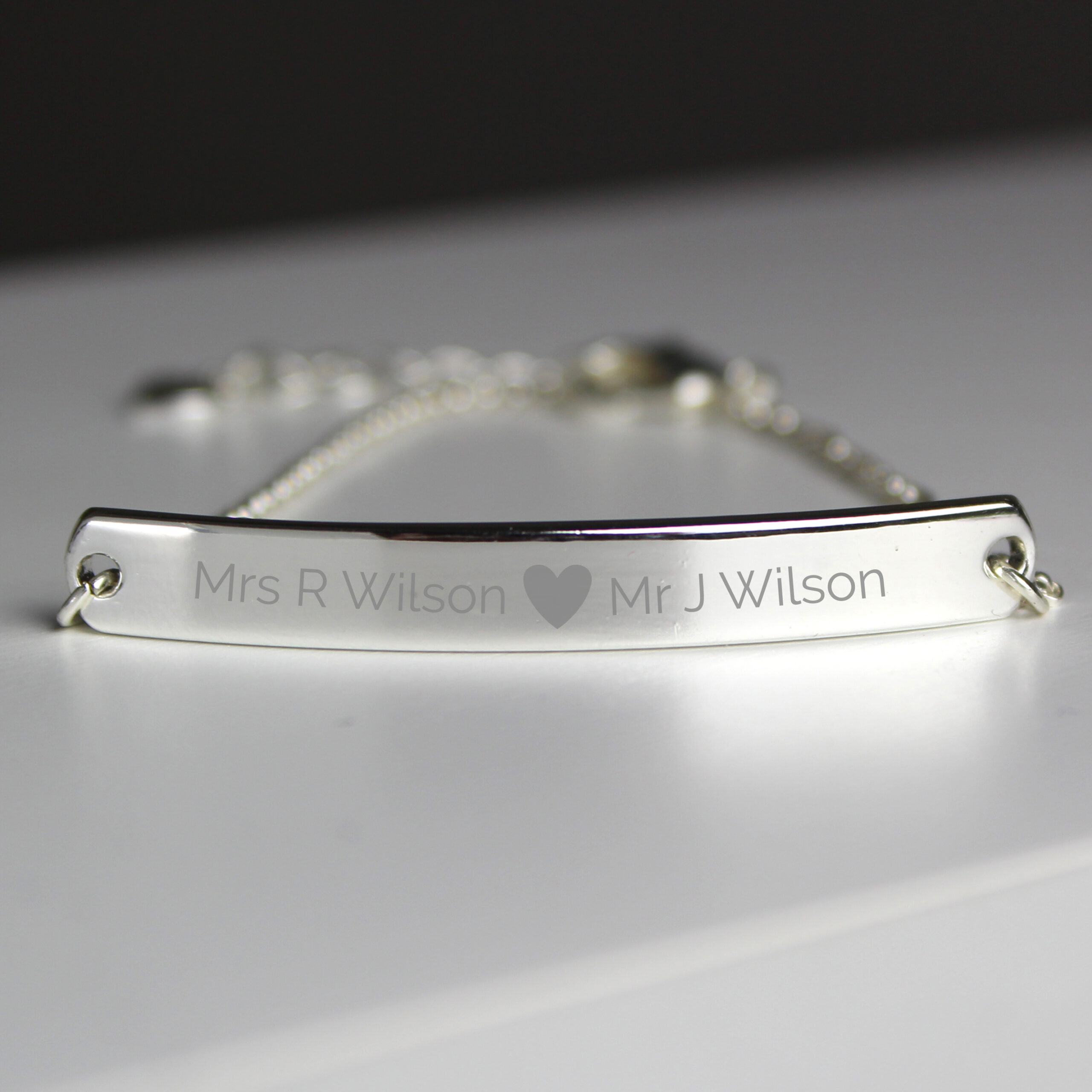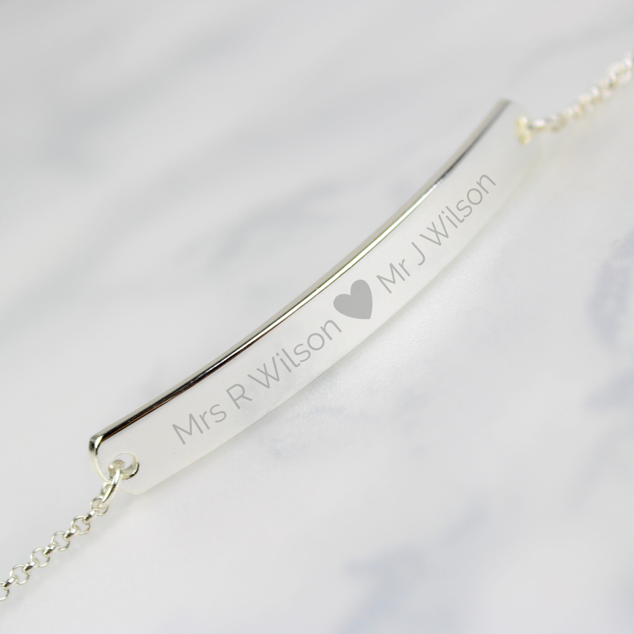 Personalised Silver Tone Heart Bar Bracelet